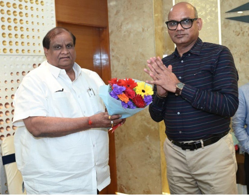 डॉ. राकेश जोशी (सुपरिटेंडेंट – सिविल हॉस्पिटल अहमदाबाद) एशिया के सबसे बड़े अस्पतालों में से सिविल अस्पताल एक है। का गुलदस्ते से स्वागत करते हुए। संस्था के राष्ट्रीय अध्यक्ष – श्री शंकरलाल बाहेती