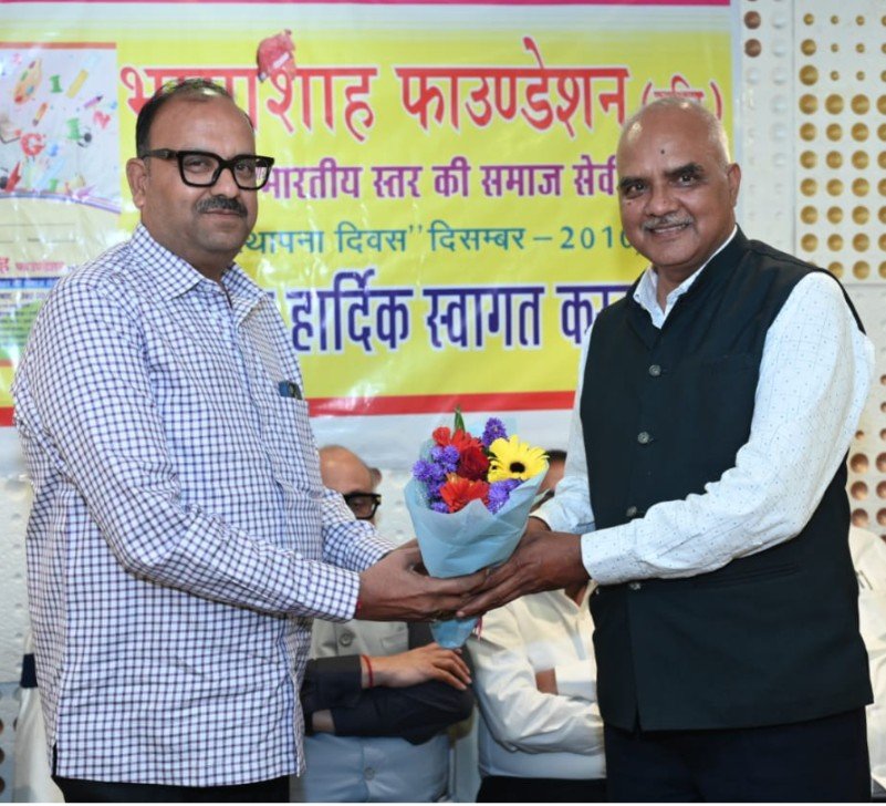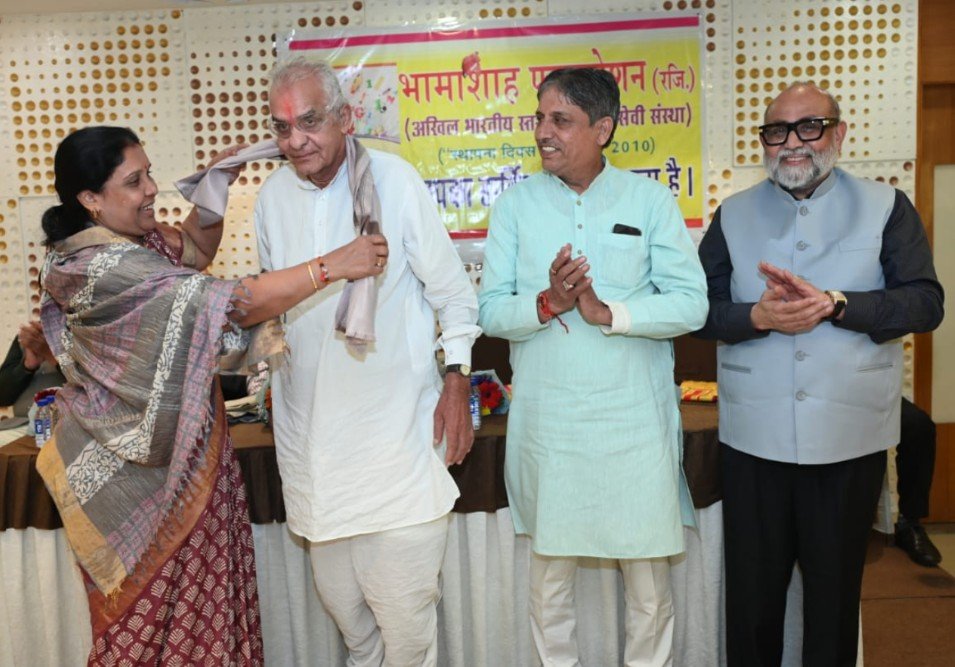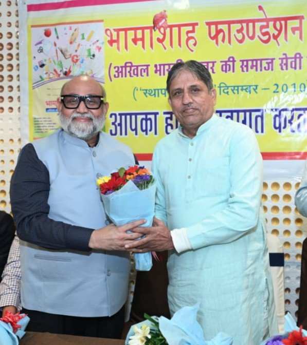 विशेष आग्रह पर भामाशाह संस्था की ओर से श्री जगदीशचन्द्र शर्मा महाराज (अध्यक्ष – अहमदाबाद मेटल मर्चेंट महामंडल) का शॉल एवं गुलदस्ते से श्रीमती प्रतिभा बेन जैन (महापौर- मेयरश्री अहमदाबाद) दरियापुर के लोकप्रिय विधायक श्री कौशिकभाई जैन राजस्थान हॉस्पिटल के अध्यक्ष श्री पी. आर. कांकरिया द्वारा हार्दिक अभिनंदन किया गया।