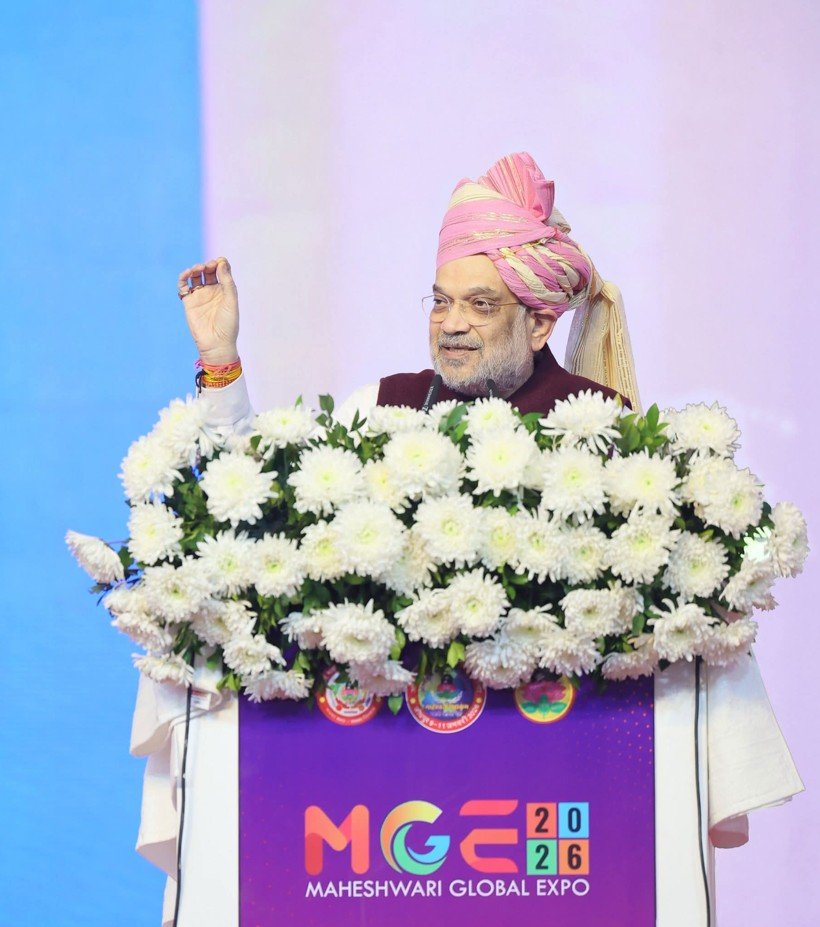 जोधपुर। केन्द्रीय गृह मंत्री अमित शाह ने राजस्थान के राजस्थान के जोधपुर में माहेश्वरी ग्लोबल कन्वेन्शन एंड एक्सपो – 2026 को संबोधित किया, इस दौरान उन्होंने कहा कि आज उन्हें एक ऐसे समाज के बीच उपस्थित होने की खुशी है, जिसने इस देश को सिर्फ देने का ही काम किया है। माहेश्वरी समाज से निकले रत्नों ने इस देश को हर क्षेत्र में आभूषण पहने हुए व्यक्ति की तरह चमकाने का काम किया है। उन्होंने कहा कि देश और विदेश में बहुत बड़े पदों पर पहुंचने और संस्थानों में उच्च स्वीकृति प्राप्त करने के बावजूद, यदि कोई समाज अपने मूल से इतना गहराई से जुड़ा रहा है, तो वह माहेश्वरी समाज ही है। इस समाज ने देश को जब जिस प्रकार की आवश्यकता पड़ी, उसी प्रकार से खुद को प्रस्तुत किया है।